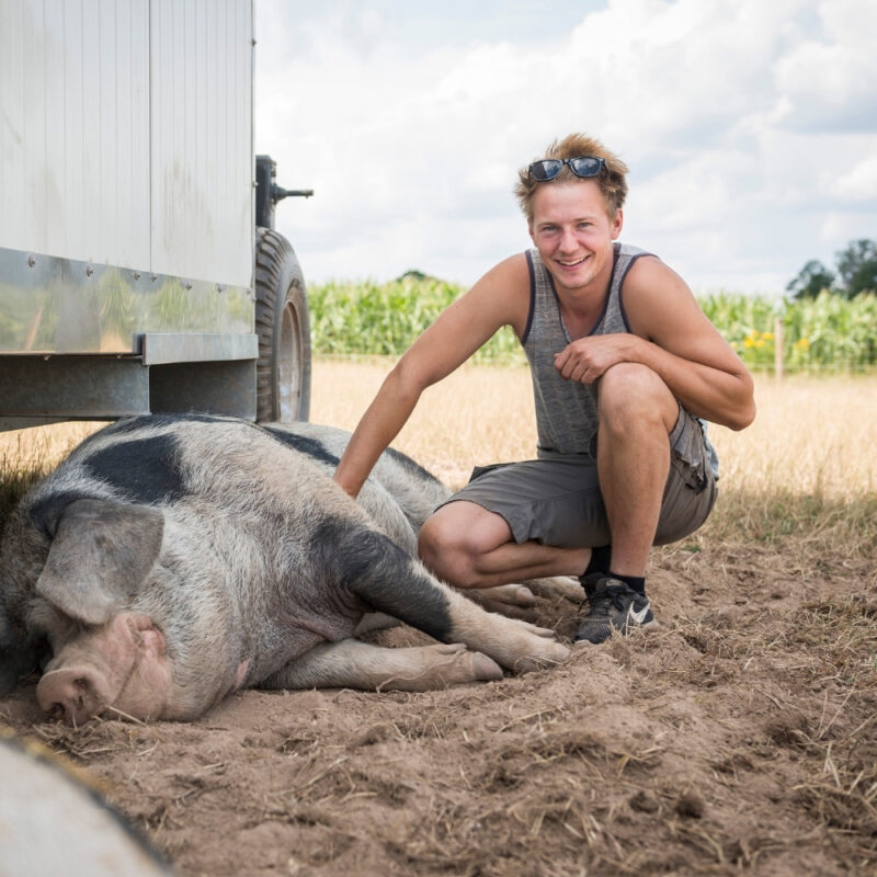 Die Krux des mobilen Schweinestalls: Konzept zur artgerechten Nutztierhaltung als Herausforderung für Behörden Inspiriert durch seine Erfahrungen während des Studiums der ökologischen Landwirtschaft, entschloss sich